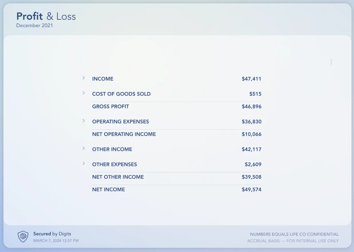 The good news is that you don’t have to do that all by yourself. Try Digits and we can help you create, visualize and deeply understand your profit and loss statements.